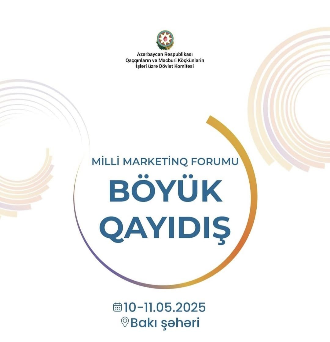 Azərbaycan Respublikası Qaçqınların və Məcburi Köçkünlərin İşləri üzrə Dövlət Komitəsi Milli Marketinq Forumuna təşkilati dəstək verir. İki gün ərzində marketinq fəaliyyəti ilə bağlı təcrübələrin paylaşıldığı forumun Böyük Qayıdış panelində iştirakçılara işğaldan azad edilmiş ərazilərə Böyük Qayıdışa dair I Dövlət Proqramı çərçivəsində həyata keçirilən tədbirlər, dövlət komitəsinin bu sahədəki fəaliyyət istiqamətləri barədə məlumat veriləcək.